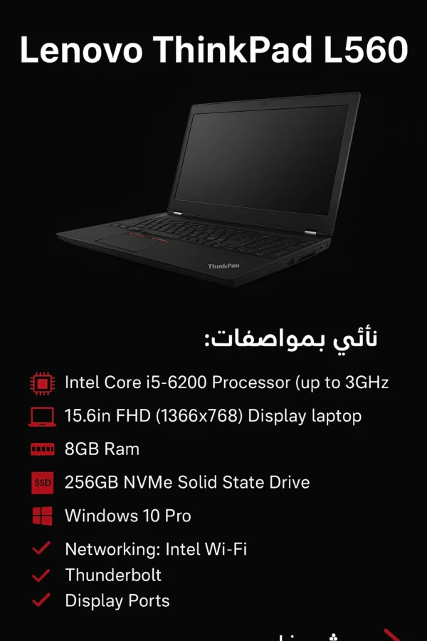 Lenovo ThinkPad L560 Laptop, 15.6in Display Laptop, Intel Core i5-6200 up to 3GHz, 8GB RAM, 256GB SSD, WiFi
